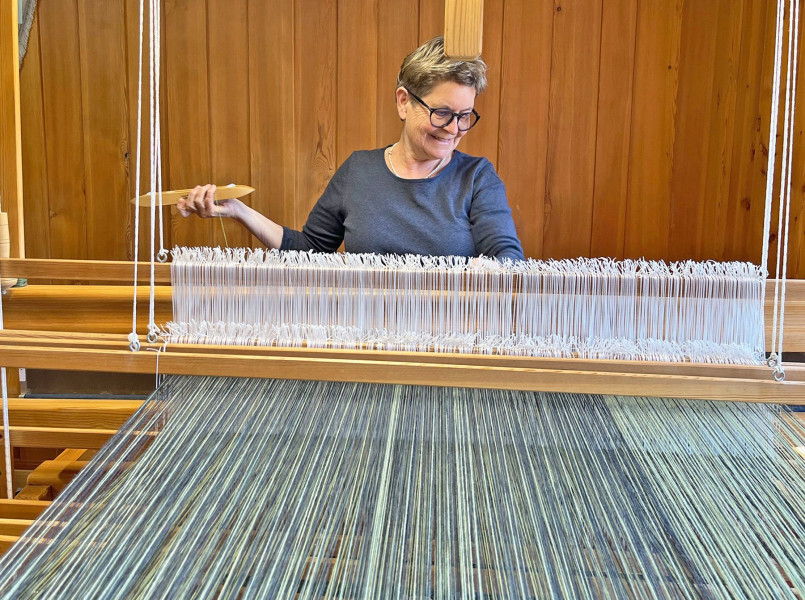 An einem Nachmittag kann man bei uns kleine Einführung in das Wben bekommen und unter Anleitung die ersten "Schüsse mit dem Schiffchen" an fertig eingerichteten Webstühlen ausprobieren.