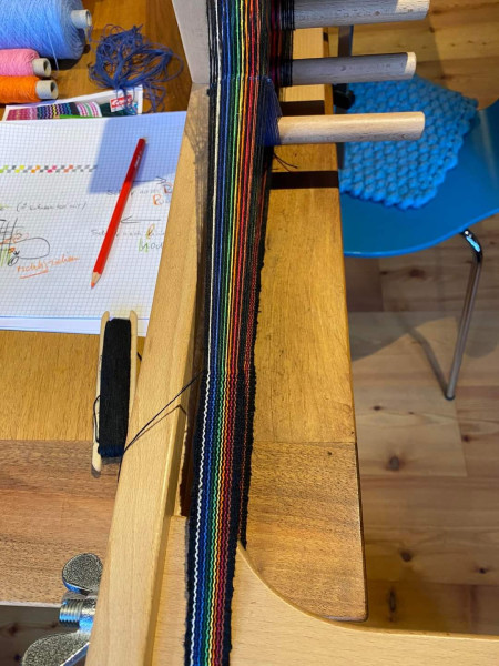 Wer keinen eigenen Inkle Loom besitzt, kann einen vom Textilverein ausleihen (für Mitglieder dieses Vereins kostenlos).
