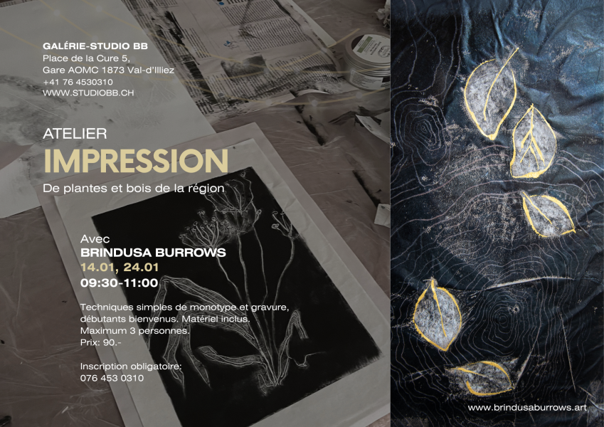 Techniques simples de monotype et gravure, débutants bienvenus. Matériel inclus.