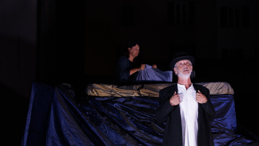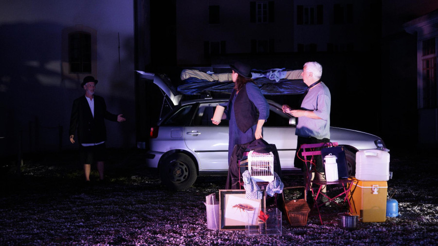 Sur la scène il n'y a rien. Ou plutôt, il n'y a qu'une voiture, un homme et une femme. Le couple est en errance. Entre un logement quitté et un logement promis, il est à la rue et n'a plus de richesses que sa voiture et quelques objets de première nécessité.