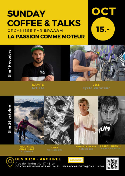 Au programme pour ce 2ème Coffee & Talk: 4 personnalités du monde l'art, de l'aventure, de l'astrologie et du sport. 4 personnalités dans des domaines bien différents mais qui partagent un point commun : la passion