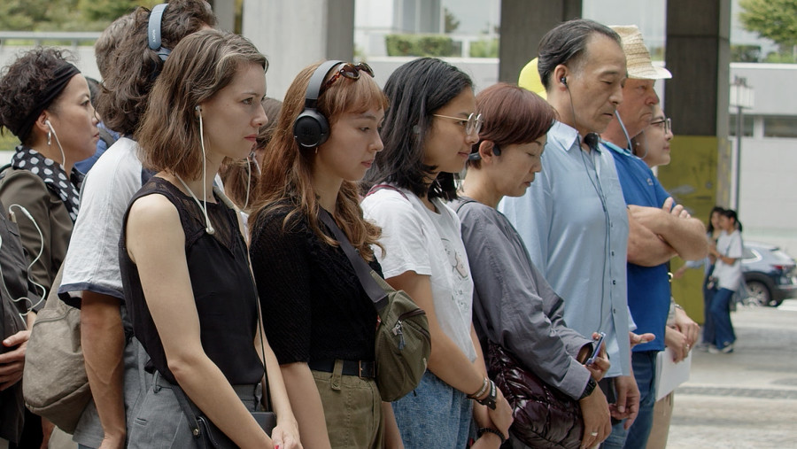Please Listen to This est un projet de performance mettant en scène dans l’espace public et urbain une orchestration sonore collective. Cette orchestration dite médiate se déploie dans l’espace avec l’aide d’une quinzaine de performeur·ses et le public, munis d’écouteurs audio, qui reçoivent tous les deux en temps réel des instructions enregistrées via une application sur leur smartphone. Cette performance par un processus de transmission propose de fédérer par le biais des écouteurs — une technologie initialement à usage individuel qui favorise le retrait — un ensemble de personnes afin de leur proposer une expérience sensible basée sur une attention accrue à leur environnement.
