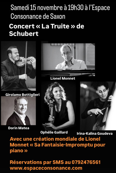 Le 15 novembre à 19h30 à l’Espace Consonance de Saxon aura lieu le Concert en quintette avec le sublime chef-d’œuvre