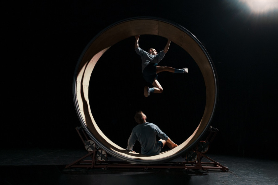 The idle hourest une performance de cirque contemporain intrigante et non verbale, qui explore la recherche incessante de productivité dans la société moderne. Sur une scène épurée dominée par une roue de hamster à taille humaine, deux acrobates aux personnalités contrastées — l’un frénétique, l’autre calme — évoluent à travers une série d’interactions physiques. La roue devient à la fois un symbole et un instrument de leur lutte existentielle : une métaphore de la course sans fin vers un bonheur insaisissable. À travers la fusion entre acrobaties, danse et son, la performance invite le public à réfléchir sur les pressions de la vie moderne, la quête de sens et la possibilité de trouver le calme au coeur du chaos.