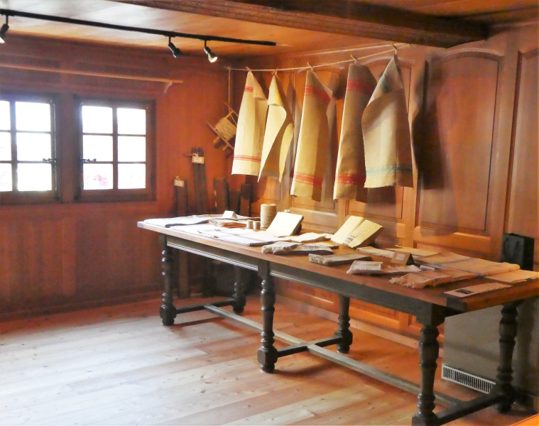 In der Dauerausstellung können historische Werkzeuge, Materialien zum Spinnen und Weben sowie traditionelle Stoffe besichtigt werden.
