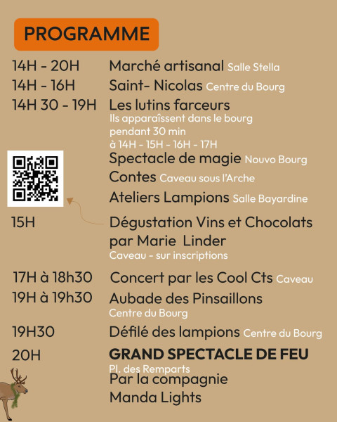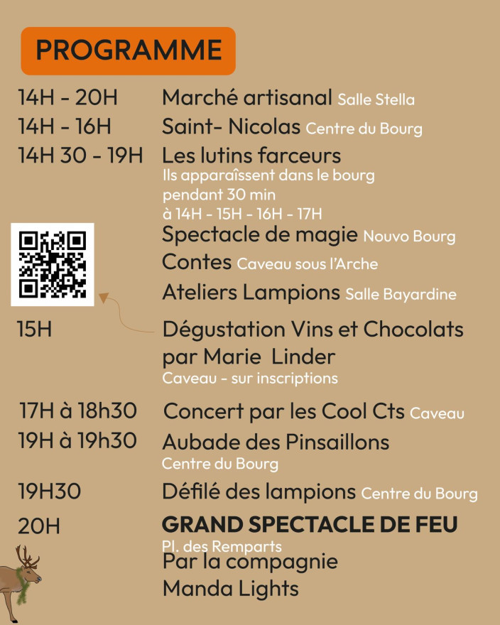 Les enfants partiront à l’aventure grâce à la Chasse aux rennes, et pourront pousser les portes des caveaux pour écouter des contes, assister à des tours de magie ou participer à un atelier lampion.