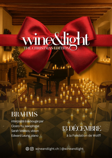Pour cette édition spéciale Noël, Wine & Light accueille trois artistes pour un concert intimiste et lumineux autour de Johannes Brahms, compositeur de génie dont la sensibilité et la profondeur résonneront parfaitement avec l’esprit de fin d’année.