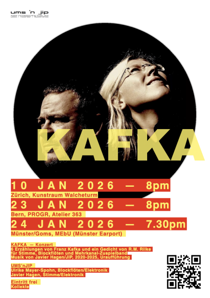 kafka ist über mehrere Jahre als Baukasten für Stimme, Blockflöte, Zuspielband (und wahlweise auch kleines Instrumentalensemble - Fl, Cl, Vle, Vc) entstanden. Das Zuspielband ist konstant präsent und etabliert zugleich den Raum, in welchem Klangereignisse - live und ab Band - geschehen. Diese verhalten sich wie Objekte, deren Präsenz im Raum sich erst über die Zeit erschliessen zu lassen scheinen. Diese Objekte sind leise, einzelne Klangcluster (für die Vertikale) oder Melodielinien (für die Horizontale), sich entwickelnd oder ins Leere verebbend – einer Versuchskonstellation gleichend, metaphorisch für die in den vertonten Texten ausgesprochenen, in der Regel vergeblichen Wünsche.