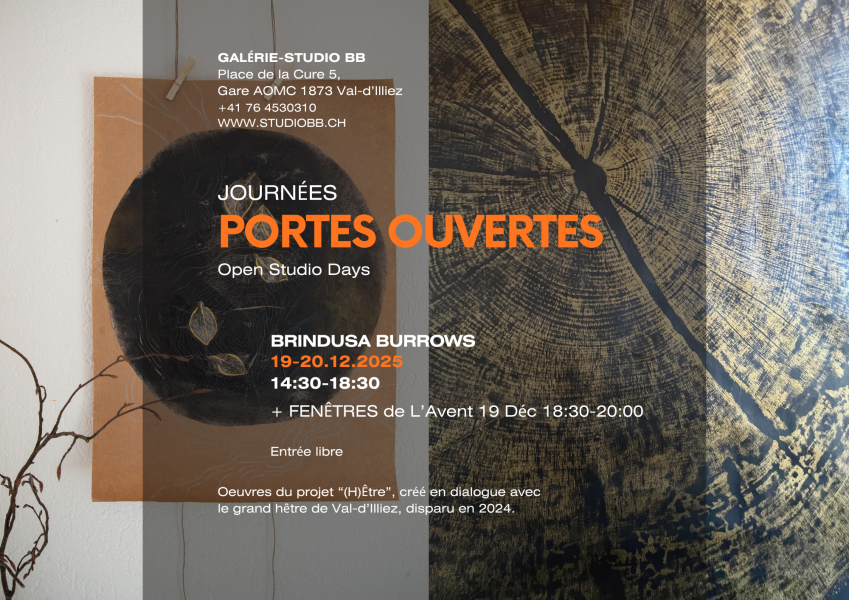 Visitez l'atelier de l'artiste Brindusa Burrows. Oeuvres du projet "(H)Être", réalisées cette année en dialogue avec le grand hêtre de Val-d'Illiez (VS), abattu en 2024, ainsi que quelques nouveautés.
