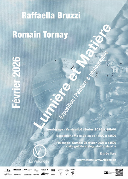 Finissage : Samedi 28 février 2026 à 14h00. Nous vous invitons à vivre une rencontre unique entre les univers des l’artiste Raffaella Bruzzi & Romain Tornay et les savoirs œnologiques de la Maison Maye. Parcours guidé des œuvres, dégustation commentée des vins — un dialogue entre art et terroir.