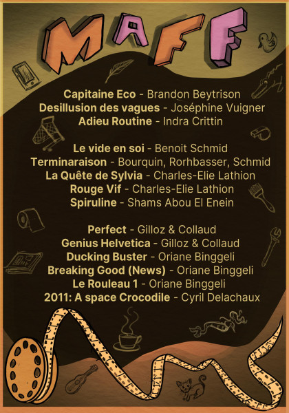 Le MAFF : c’est un florilège de 14 courts-métrages, made in Valais. Des premières inédites jamais montrées au grand jour. Des lauréats de concours, national ou international. Ou des coups de cœur des auteurs. Simplement.