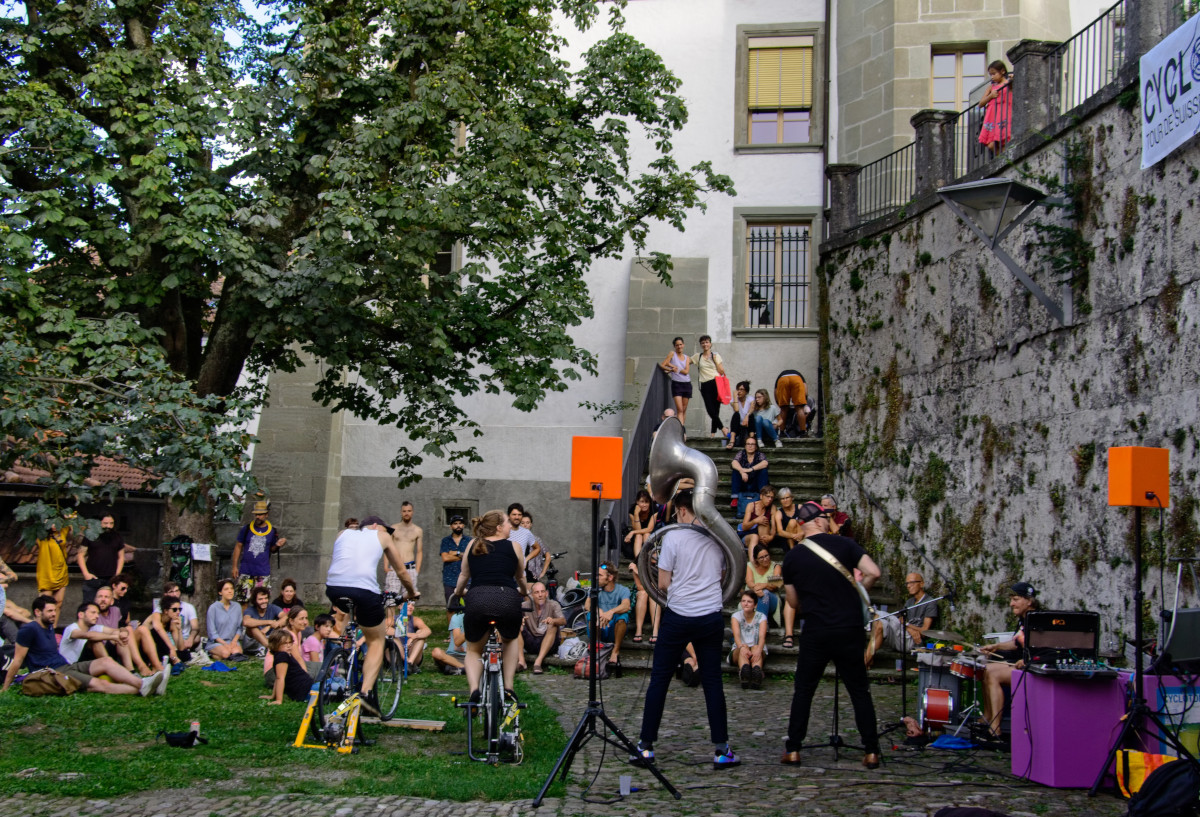 Konzertbesucher*innen treten während den Auftritten in die Pedale und erzeugen mit ihrer Muskelkraft den benötigten Strom, um die Konzerte zu verstärken. Dieses innovative Soundsystem heisst Cyclotone und wurde 2012 von den Freiburgern Musikern Bernhard Zitz und Pierre Berset entwickelt.