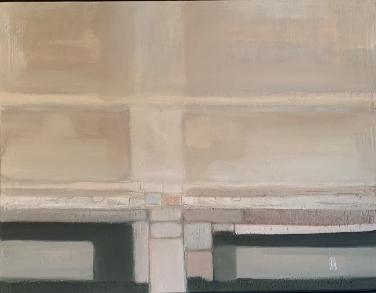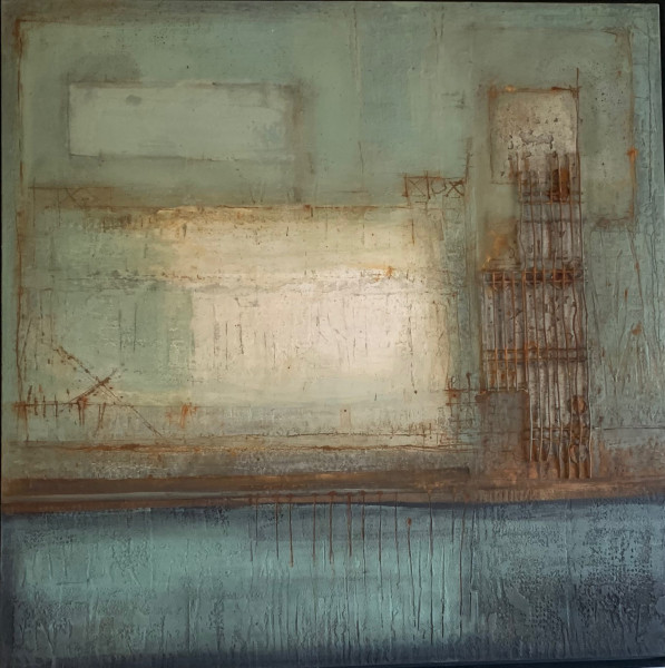 Ce “jeune peintre”, enseignant à la retraite et autodidacte passinné, inspiré par la nature et les objets qui y sont abandonnés, pratique l’acrylique. Mais, tel un maçon muni de sa truelle, il aime façonner, voir naître la forme sous la matière. Son plaisir est dans l’expérimentation : l’ouvrage sans cesse remis sur le métier vit ainsi plusieurs vies, passant d’une teinte à une autre, se chargeant de matériaux (sable, fer, rouille). Le support lui-même, la toile comme le châssis, est souvent issu de récupérations. Le cadre, sobre et élégant, est fabriqué par le peintre.