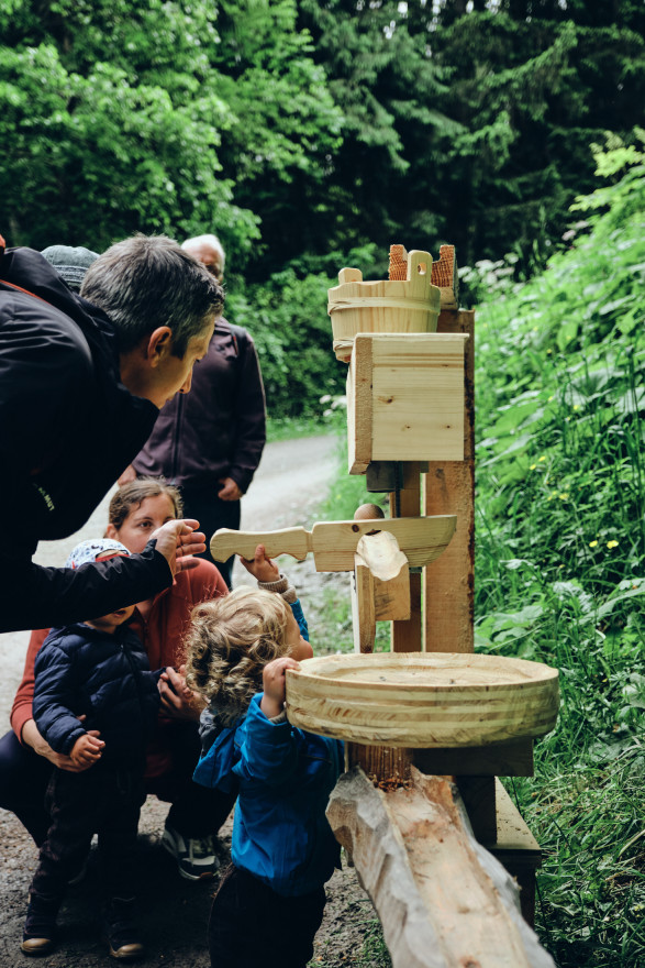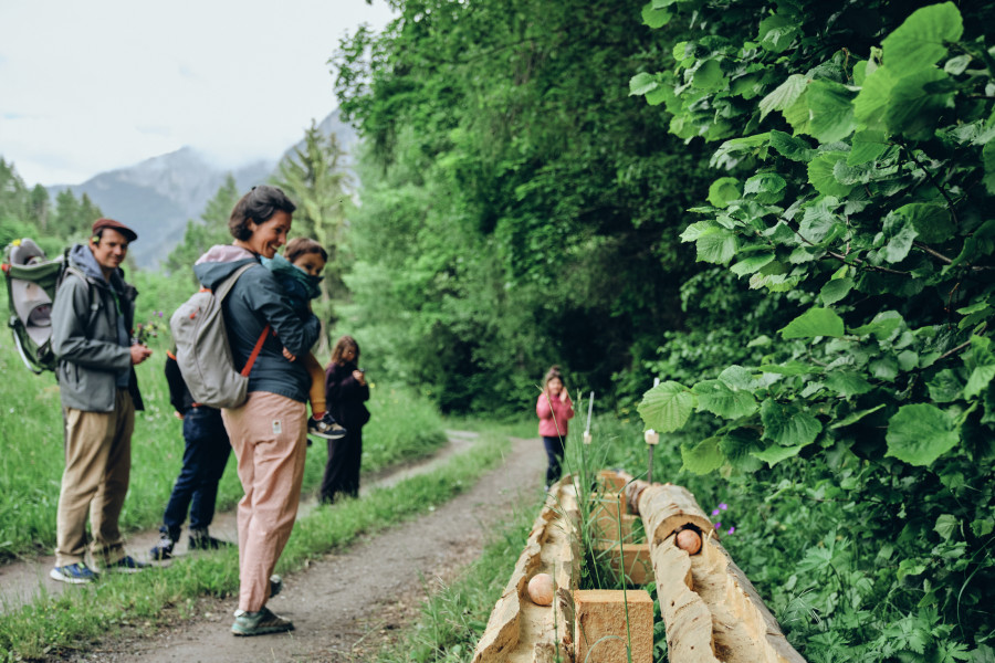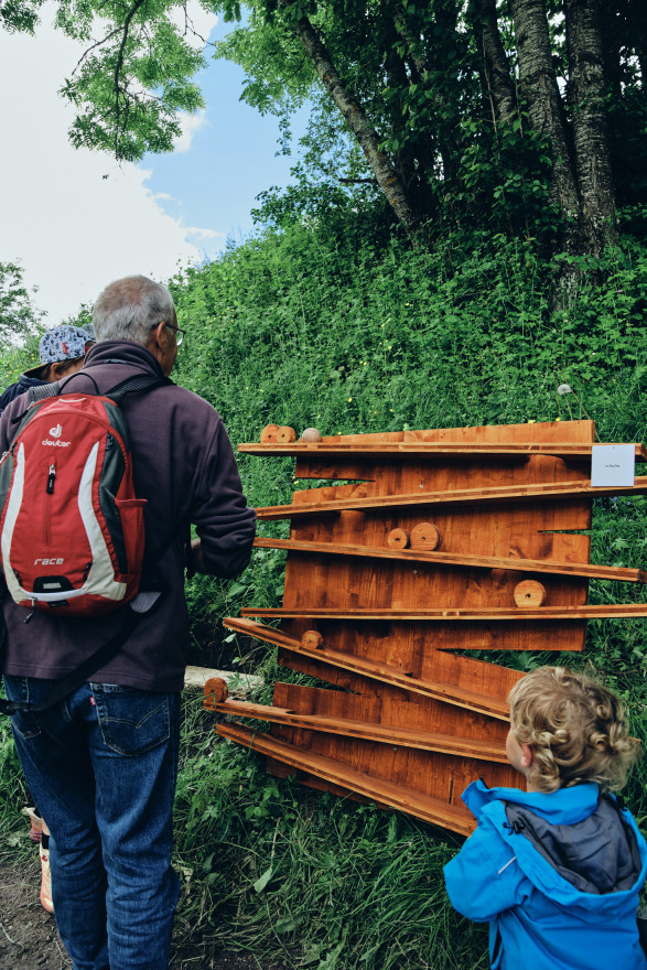 Ce parcours inédit étoffé de nouvelles œuvres est une véritable ode au bois local, où les balles parcourent un trajet de Bruson jusqu’au Châble en passant au travers de mécanismes et de constructions délirantes.