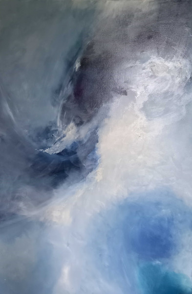 Incessant regard vers le langage vaporeux du ciel qui me présente ses volutes. Je tente de le suivre avec l’huile délicate. Incessante poursuite, incessants passages et métamorphoses. Mon âme se disperse et se perd dans la danse du pinceau. Je cherche l’impalpable qui a existé dans l’éphémère. Tout est mouvement et pourtant je me permets de figer l’instant. Le pinceau est mouvement et sa trace laisse libre le regard et l’imaginaire.