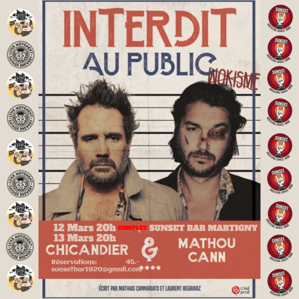 Le Sunset Bar accueille un duo qui ne fait jamais dans la dentelle : Chicandier & Mathou débarquent avec leur tout nouveau spectacle “Interdit au Public”, un show taillé pour ceux qui aiment rire sans filtres, sans excuses… et sans aucune garantie de bon goût.