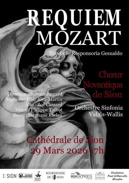 Le Chœur Novantiqua de Sion a le plaisir de vous inviter à son prochain concert dédié au Requiem de Mozart. Dans le cadre prestigieux de la Cathédrale, laissez-vous transporter par une interprétation magistrale à l'heure où la lumière décline sur la ville.