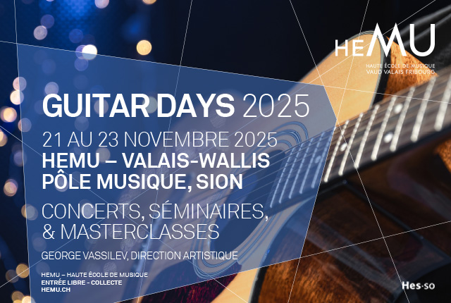 KonzertVortrag / KonferenzWeiteres Fr, 21.11.2025 Guitar Days 2025 Pôle Musique, Sion Mehr dazu Mehr dazu