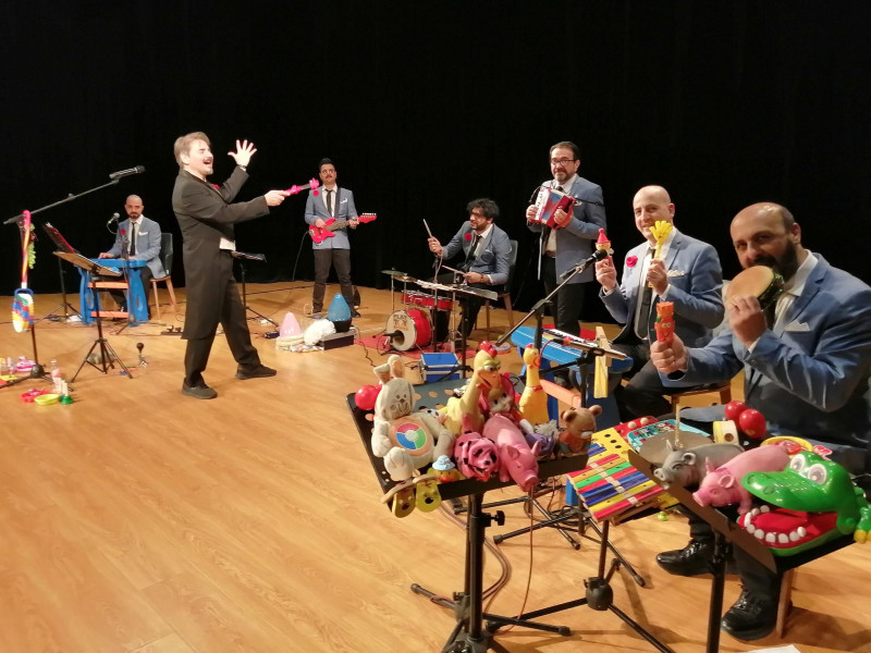 Fondé en 2022 et composé de huit musiciens professionnels, le Play Toy Orchestra (PTO) est le premier et le seul ensemble au monde à jouer avec de véritables instruments-jouets : des tambours en plastique ou en papier cartonné aux pianos jouets en passant par les accordéons ou les xylophones, une variété incroyable est représentée. Le répertoire est tout aussi bigarré et accessible : musiques de films, jingles publicitaires, rythmes latino-américains, mais aussi chefs-d’œuvre classiques populaires.