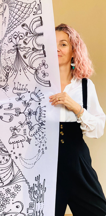 Après une première vie professionnelle loin de l'art, elle se forme au graphisme en 2005 et retrouve le dessin en 2019, à la suite d'épreuves de santé qui transforment son rapport au temps et au monde.