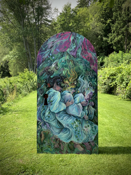 Nourrie par les histoires familiales, les légendes, l’imagerie catholique, le cinéma et la forêt de son enfance, sa pratique place la peinture au centre, tout en s’étendant à l’animation, la rotoscopie et l’installation.