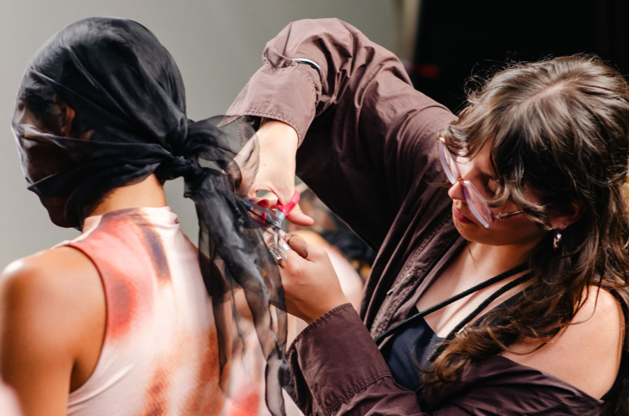 Je travaille en tant qu'artiste indépendante à la croisée de la mode, du textile et des arts du spectacle. J'ai une formation en design de mode, où je me suis beaucoup intéressée aux matériaux, aux structures et au travail textile.
