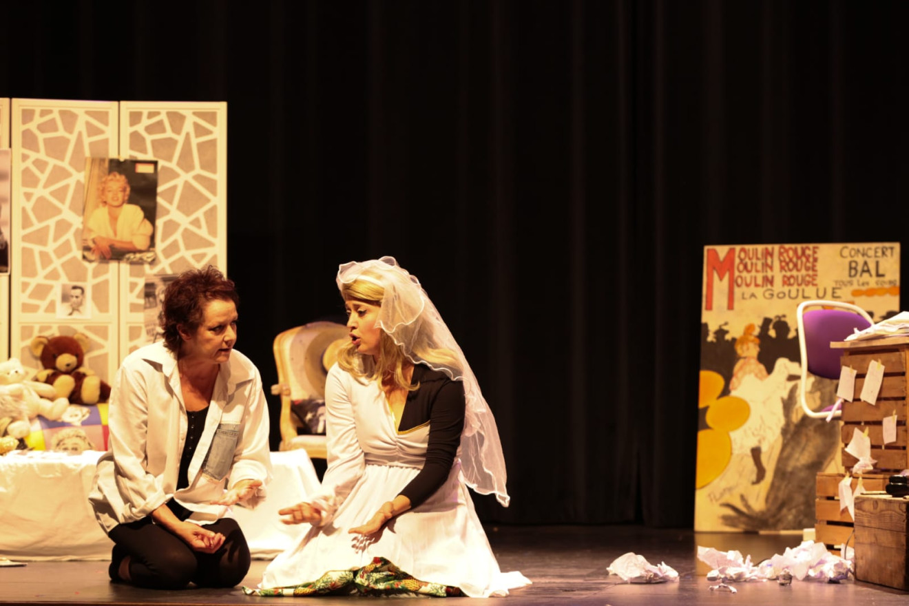 Sur scène, Aline et Christine, sont mises en scène par Séverine.