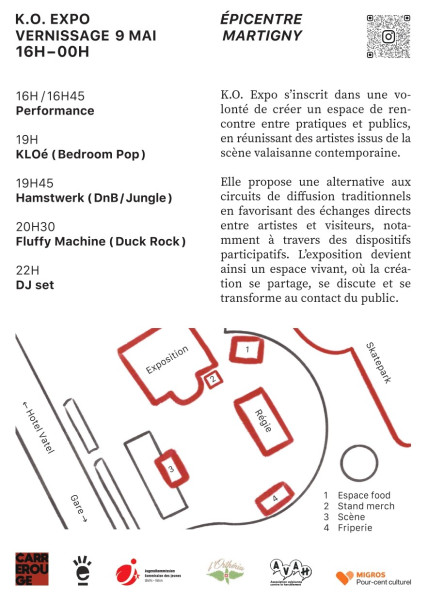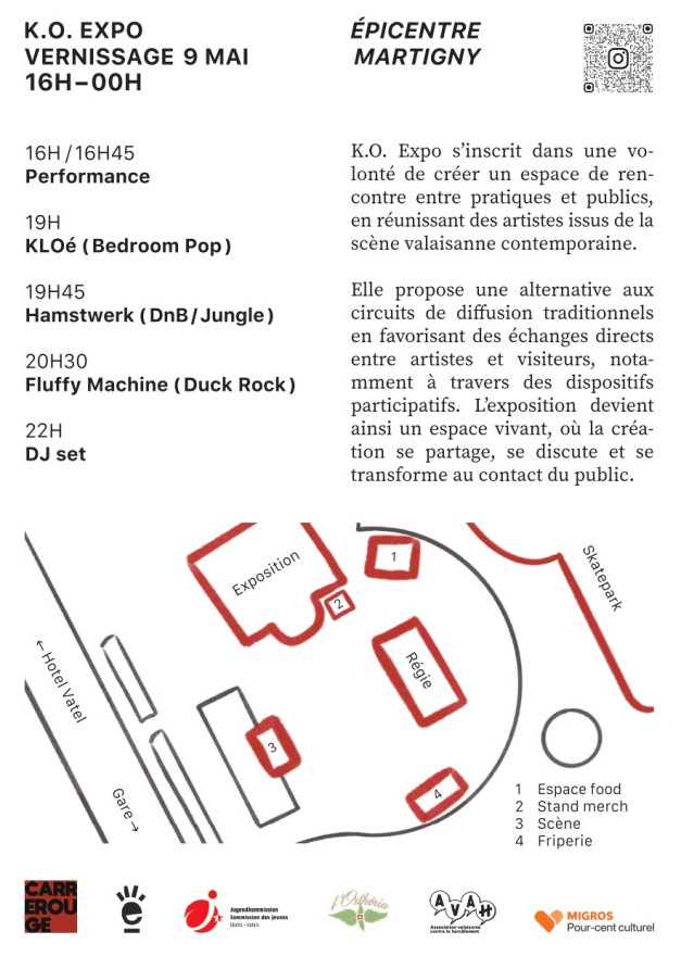 Ce 9 Mai, Carré Rouge organise le K.O. Expo, une expo de 9 artistes jeunes et émergents à l'épicentre de Martigny (A.K.A La maison des jeunes !). Au menu : Expo, Stands frip, Strass avec Appart 444, buvette, repas et j'en passe !
