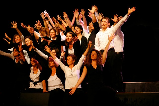 Allegria est une troupe de spectacle en chansons composée de 45 chanteurs et solistes qui évoluent sur scène en mouvements chorégraphiques.